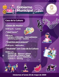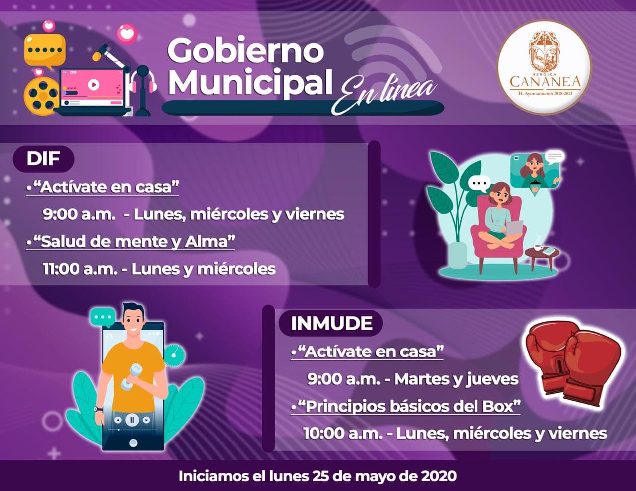 Entre los planes de “En Línea” está ofrecer a las familias cananenses una oportunidad de que se activen en casa de forma sencilla, con ejercicio de bajo impacto impartidos por el fisioterapeuta de DIF y la coordinación deportiva de INMUDE además de la dinámica participación de las maestras de Casa de la cultura con talleres de pilates, yoga, ritmos latinos y danza folclórica.