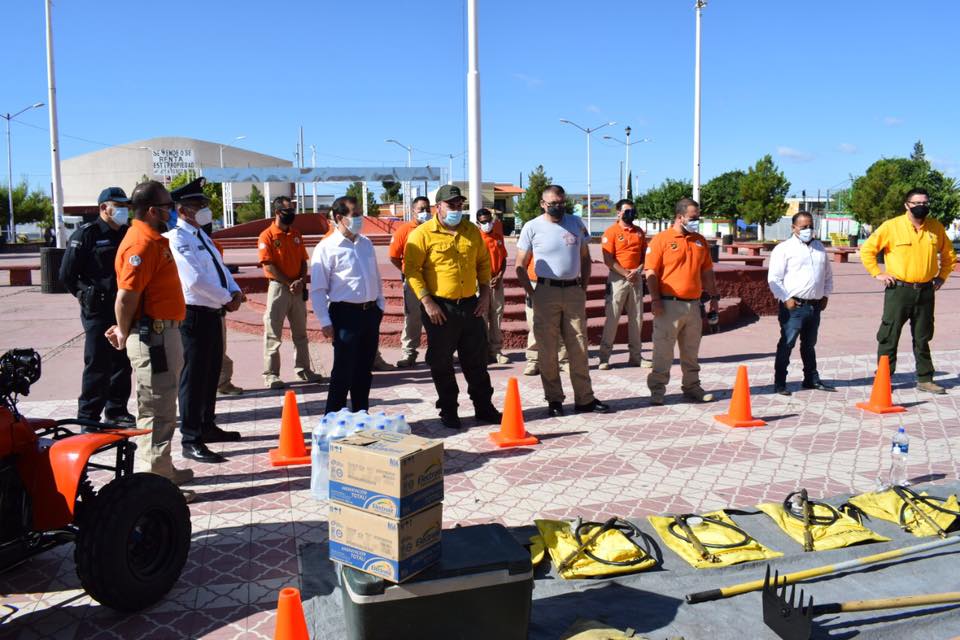 Agua Prieta, Sonora a 07 de julio de 2020.- El Alcalde Jesús Alfonso Montaño Durazo y el Director de la Unidad Municipal de Protección Civil, Armando Castañeda Sánchez, recibieron la visita del Supervisor Regional del Centro Regional del Manejo del Fuego de la Comisión Nacional Forestal (CONAFOR), Ecólogo César Abraham Valencia Maldonado y el Ing. Edgardo Robles Quijada coordinador de Zona de la CONAFOR Sonora, quienes convocaron a los combatientes de la Brigada Rural Forestal Agua Prieta.Durante la reunión tanto el representante federal como estatal, indicaron que es de vital importancia conocer las necesidades de las brigadas y las oportunidades de mejora continua, hablar con ellos y hacerles saber que tienen el apoyo Federal y Estatal.