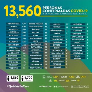 Entre tanto en la región, hasta la noche de este miércoles, Cananea presentaba un total de 164 casos positivos de coronavirus, mientras que Agua Prieta alcanzó la cifra de 408 y Nacozari de García 46.