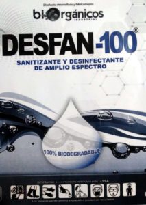 Ese líquido se llama DESFAN-100, es un sanitizante y desinfectante de amplio espectro que produce la empresa Biorgánicos Industrial, empresa mexicana. Se compone básicamente de extracto de semilla de toronja, no es tóxico, es 100% biodegradable y tiene efecto deodorizante. Además no contiene solventes, no es corrosivo y no se evapora, es 100% soluble en agua.