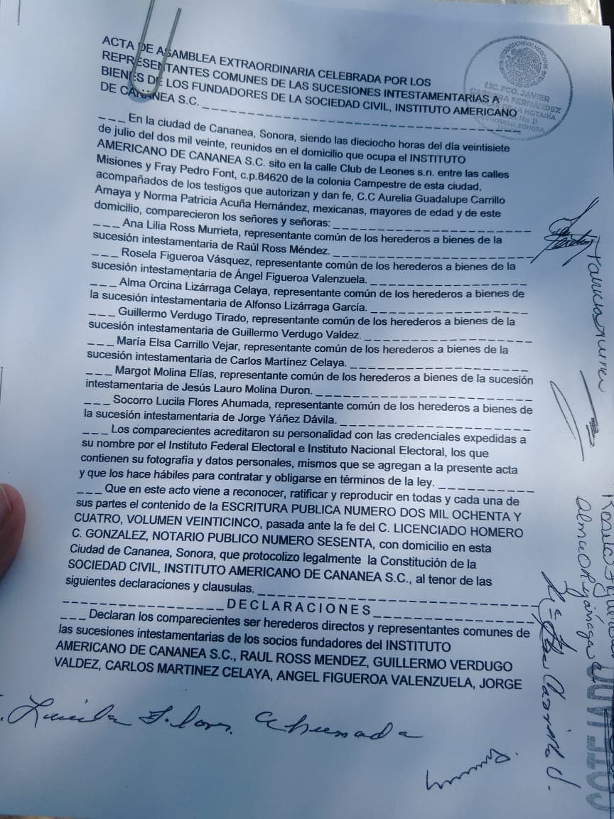 parte, 7 de los 10 co-herederos, han decidido a través de asamblea que los represente la Dra. Anna Ross, mientras que por otra parte, Héctor Padrés Jr., sobrino del Ex Gobernador de Sonora Guillermo Padrés Elías, argumenta ser el propietario y que ha interpuesto una denuncia ante el Ministerio Público del Fuero Común de Cananea.