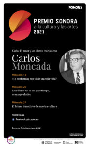 Hermosillo, Sonora; enero 11 de 2021. “El amor y los libros” es el título del ciclo de charlas que impartirá el periodista, escritor y maestro Carlos Moncada Ochoa, galardonado con el Premio Sonora a la Cultura y las Artes 2020, todos los miércoles de enero.