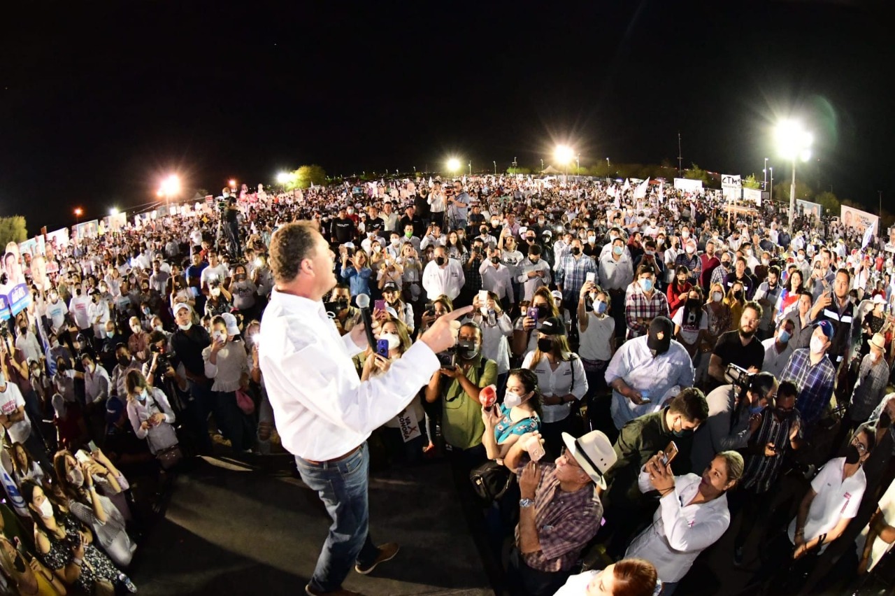 Ante un abarrotado escenario de más de 10 mil hermosillenses, el Candidato de la Alianza “Va por Sonora”, encabezó su segundo cierre regional de campaña en la capital sonorense, acompañado de su esposa Pily Madrid y sus hijas Raquel, Daniela y Fernanda; en donde, además, su proyecto fue reconocido como la opción de Gobierno con mayor cercanía y conocimiento de sus necesidades.