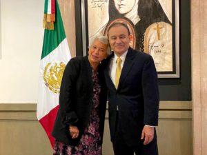 Horas antes el gobernador electo se reunió con Olga Sánchez Cordero, secretaria de Gobernación, con quien discutió temas relacionados con política interior, alerta de género, atención a víctimas, desaparecidos e instancias relacionadas con atención a las mujeres.