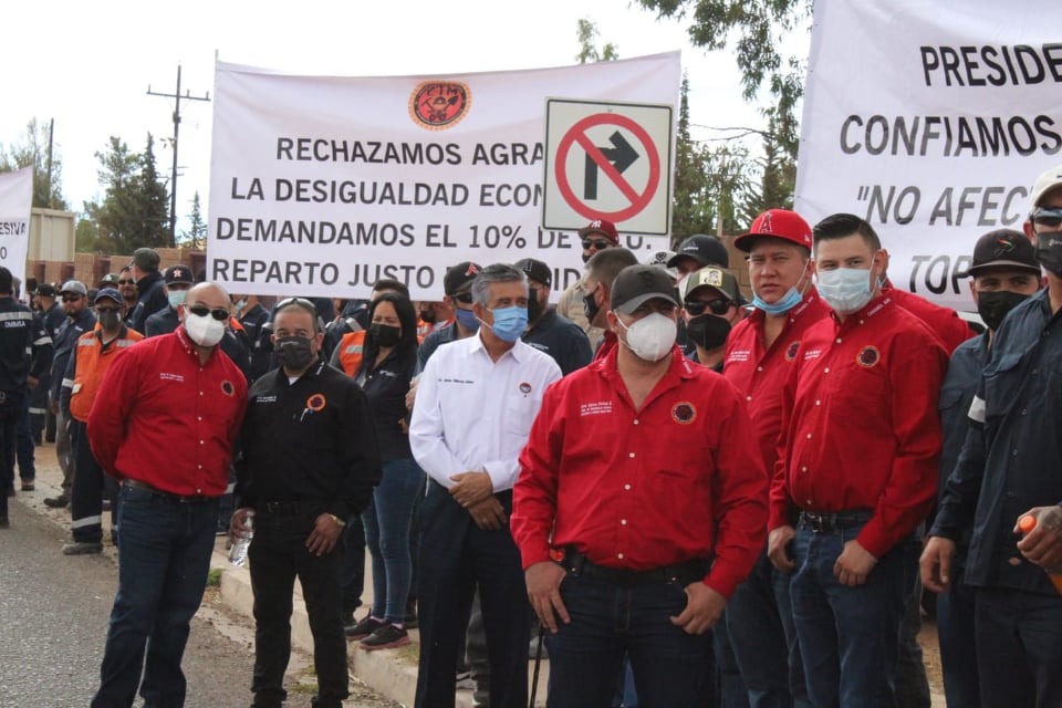 Durante su gira de trabajo por el mineral, el presidente de la República, Andrés Manuel López Obrador, luego de escuchar los planteamientos del también dirigente nacional del Sindicato Mineros de la CTM, se comprometió con los trabajadores mineros de la sección 08, buscar la confluencia de todas las partes a fin de GARANTIZAR EN EL CONTRATO COLECTIVO DE TRABAJO EL 10% de las utilidades y de la revisión general del CCT que en estos momentos está en curso.