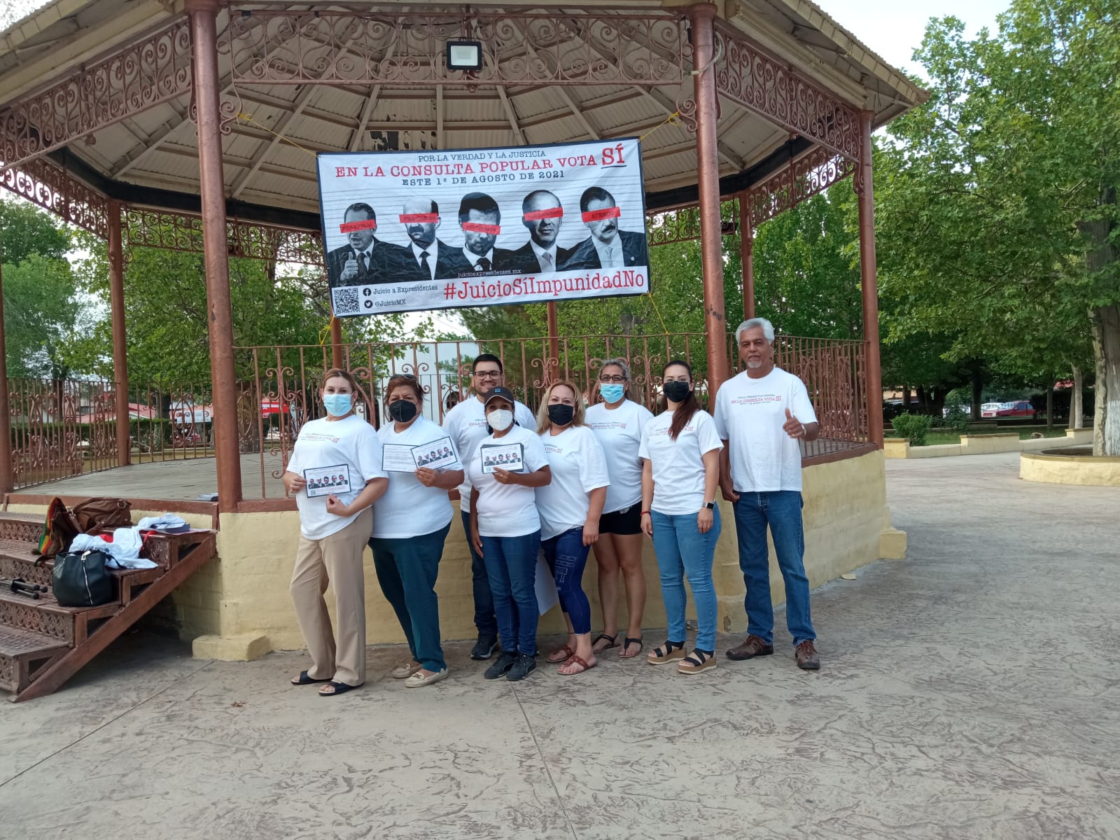 Cananea, Sonora a 13 de julio de 2021.- Este martes en la plaza Pública Jardín Juárez de está localidad, miembros del Colectivo Mexicano por la 4 T, explicaron el objetivo y la dinámica de lo que será la Consulta Nacional para enjuiciar a Ex Presidentes de la República, cómo Carlos Salinas de Gortari, Ernesto Zedillo, Vicente Fox, Felipe Calderón y Enrique Peña Nieto.