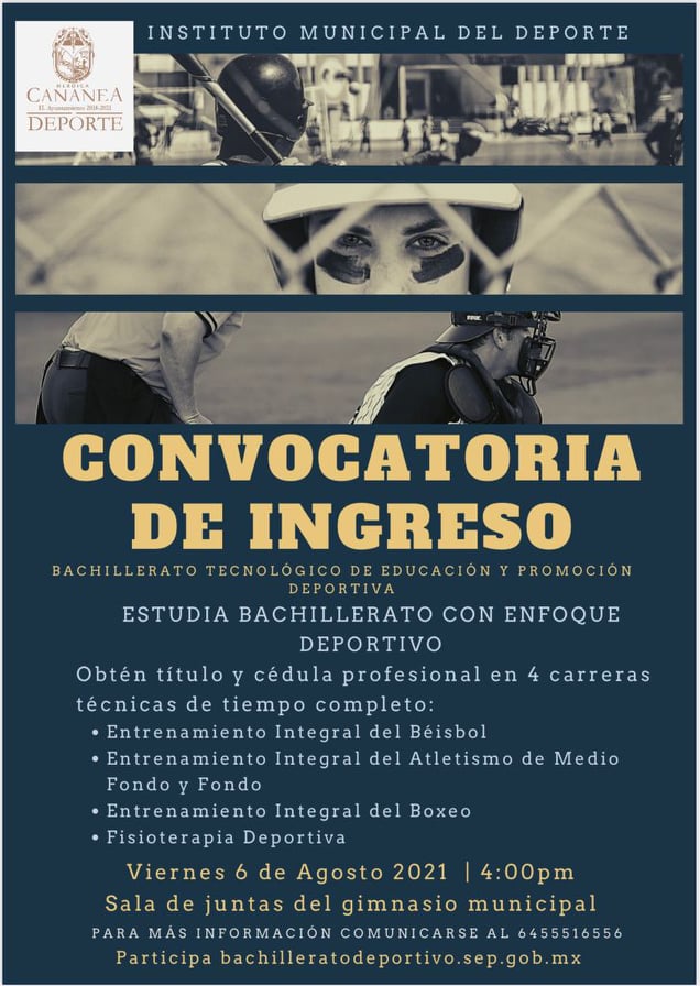 Cananea, Sonora a 04 de agosto de 2021.- El Ayuntamiento de Cananea a través de la Dirección del Deporte, informó que la Secretaría de Educación Pública, a través de la Subsecretaría de Educación Media Superior, en concordancia con los artículos 3º y 31º de la Constitución Política de los Estados Unidos Mexicanos, convoca a adolescentes que residan en México y cuenten con certificado de educación secundaria terminada o sean estudiantes regulares en el tercer grado de educación secundaria, a participar en el concurso de ingreso para iniciar sus estudios de educación media superior (bachillerato tecnológico).