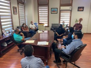 Cananea, Sonora a 04 de Agosto de 2021.- El Presidente Municipal Eduardo Quiroga, se reunió con los representantes del Programa Jóvenes Construyendo el Futuro, ejercicio que vincula a personas de entre 18 y 29 años de edad, que no estudian y no trabajan, con empresas, talleres, instituciones o negocios donde desarrollan o fortalecen hábitos laborales y competencias técnicas para incrementar sus posibilidades de empleabilidad a futuro.Durante la capacitación, hasta por un año, los jóvenes reciben un apoyo mensual y un seguro médico contra enfermedades, maternidad y riesgos de trabajo.