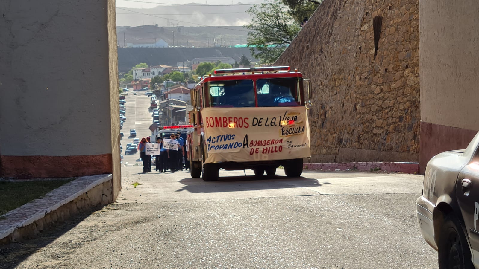 – A las 05:00 de la tarde y de manera simultánea con acciones de protesta que se realizaron en la capital del estado, Bomberos voluntarios de Cananea encabezaron una marcha pacífica que inició en la estación central ubicada en el Centro Histórico El Ronquillo y concluyó en la plaza jardín Juárez.