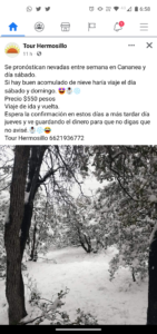 Cananea, Sonora a 29 de diciembre de 2021.- En espera de que los pronósticos se confirmen y la nieve haga presencia en «La Ciudad del Cobre», se encuentran Guías de Turistas y Turoperadores.