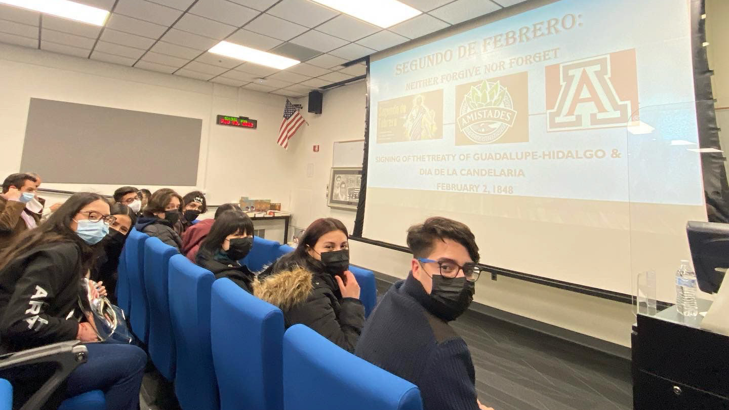 Cananea, Sonora.- El día de ayer miércoles 2 de febrero, alumnos y maestros de la Escuela Preparatoria Lázaro Cárdenas, acudieron a la Universidad de Arizona en la ciudad de Tucson, como invitados de la Organización Amistades de USA a la conferencia «Neither forgive not forget» que fue impartida por el luchador social chicano José Ángel Gutiérrez, quién habló sobre el 174 Aniversario de la historia México Americana en USA.