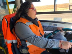 Cananea, Sonora a 08 de febrero de 2022.- A un mes de que se conmemore el Día Internacional de la Mujer, platicamos con Laura Ramírez, quién es una madre de familia de dos pequeños de 10 y 8 años de edad, que se dice orgullosa de su trabajo y de lo que del oficio de chofer ha aprendido en los últimos meses.