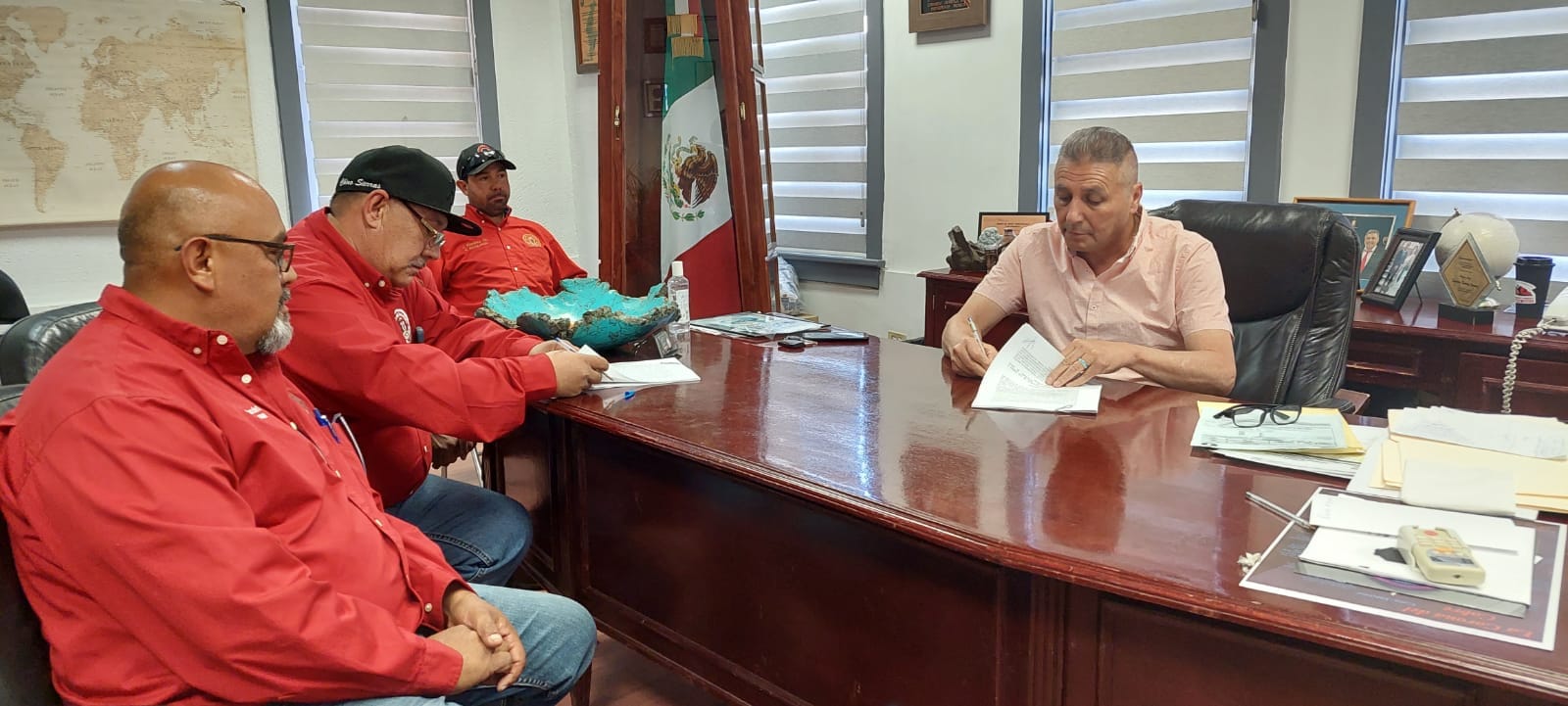 Cananea, Sonora a 25 de mayo de 2022.- Este miércoles, se firmó el contrato colectivo de trabajo con el Sindicato Único de Trabajadores al Servicio del H. Ayuntamiento de Cananea.