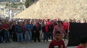 SEÑOR PRESIDENTE, HOY LA SECCIÓN 65 DE CANANEA SONORA, ESTAMOS CUMPLIENDO 15 AÑOS DE UNA HUELGA HISTORICA EN DEFENSA DE NUESTROS DERECHOS LABORALES, PERO MÁS QUE UNA HUELGA ES LA DEFENSA DE LAS CONQUISTAS QUE POR AÑOS SE OBTUVIERON POR NUESTROS ANTEPASADOS, LOS CUALES SIMPRE PUGNARON POR MEJORES CONDICIONES DE SALUD Y DE TRABAJO, PENSANDO NO SOLO EN LOS TRABAJADORES SINO EN TODA LA COMUNIDAD CANANENSE. A LA LLEGADA DE GRUPO MÉXICO A CANANEA, LA LUCHA OBRERA DE LA SECCIÓN 65 TUVO QUE CAMBIAR DE GIRO ANTE LAS EMBESTIDAS NO SOLO DE LA EMPRESA SINO DE LOS GOBIERNOS NEOLIBERALES QUE PROTEGIERON SIEMPRE LOS INTERESES CREADOS, CONVIRTIÉNDOSE TOTALMENTE EN LUCHAS DESIGUALES YA QUE SUS PRETENCIONES ERAN TERMINAR CON NUESTRO SINDICATO Y POR ENDE CON NUESTRO CONTTRATO COLECTIVO DE TRABAJO, DESTACANDO SIEMPRE LA CORRUPCIÓN CON LA QUE SE CONDUCE GRUPO MÉXICO. EL 30 DE JULIO DEL 2007, SE INICIA LA HUELGA ANTE LA CERRAZÓN DE GRUPO MÉXICO EN RESOLVER LOS PROBLEMAS EN MATERIA DE SEGURIDAD E HIGIENE, ASÍ COMO OTRAS VIOLACIONES AL CONTRATO COLECTIVO. UNA HUELGA QUE NO SOLO HA MARCADO A LOS TRABAJADORES SI NO QUE SE EVIDENCIÓ TODAS LAS ILEGALIDADES COMETIDAS POR GRUPO MÉXICO EN CONTUVERNIO CON LOS GOBIERNOS EN TURNO EN CONTRA DE LOS MINEROS DE LA SECCION 65, TALES COMO: LA UTILIZACIÓN DE LA FUERZA PUBLICA PARA REPRIMIR A LOS TRABAJADORES EN PLENO EJERCICIO DE HUELGA, SE NOS NEGÓ EL DERECHO A LA SALUD JUNTO CON NUESTRAS FAMILIAS, SE NOS BOLETINÓ A LOS TRABAJADORES Y A NUESTRO HIJOS EN «LISTAS NEGRAS» PARA QUE SE NOS NEGARA EL DERECHO AL TRABAJO, SE UTILIZÓ EL TRAFICO DE INFLUENCIAS PARA LA TERMINACIÓN DE LA HUELGA, ENTRE OTRAS VIOLACIONES ENCONTRA DE LOS MINEROS. ESTE CONFLICTO NO SOLO MARCÓ A LOS TRABAJADORES Y SUS FAMILIAS, SINO QUE PROVOCÓ UNA GRAN CRISIS SOCIAL EN LA COMUNIDAD CANANENSE POR CAUSA DE GRUPO MÉXICO.