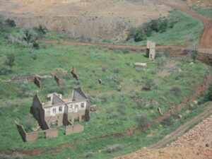 En agosto de 1990 salieron las últimas familias y en el mes de septiembre la empresa minera clausuró definitivamente el camino a lo que fueran los Campos Mineros, con el propósito de tener libre el campo para sus vaciaderos de tepetate o trabajos de exploración y expansión. Ya no será posible estacionar los vehículos frente a Buena Vista y sentarse en los muros de cemento de los que fueron cimientos de la Planta de Fuerza de “La Demócrata Mining Company”, propiedad del alemán Kaufman y cuyo gerente era el escoces llamado Mc Kay, mejor conocido como el “borracheras”, era hermoso observar desde ese lugar Buena Vista, los depósitos de cal a un costado, las aguas de los jales de Cananea Vieja, el cementerio de Pueblo Nuevo, la colosal Elenita al fondo y con cierta tristeza ver desaparece un pueblo lleno de familiar historia, hermanado por el tiempo bajo el tepetate.