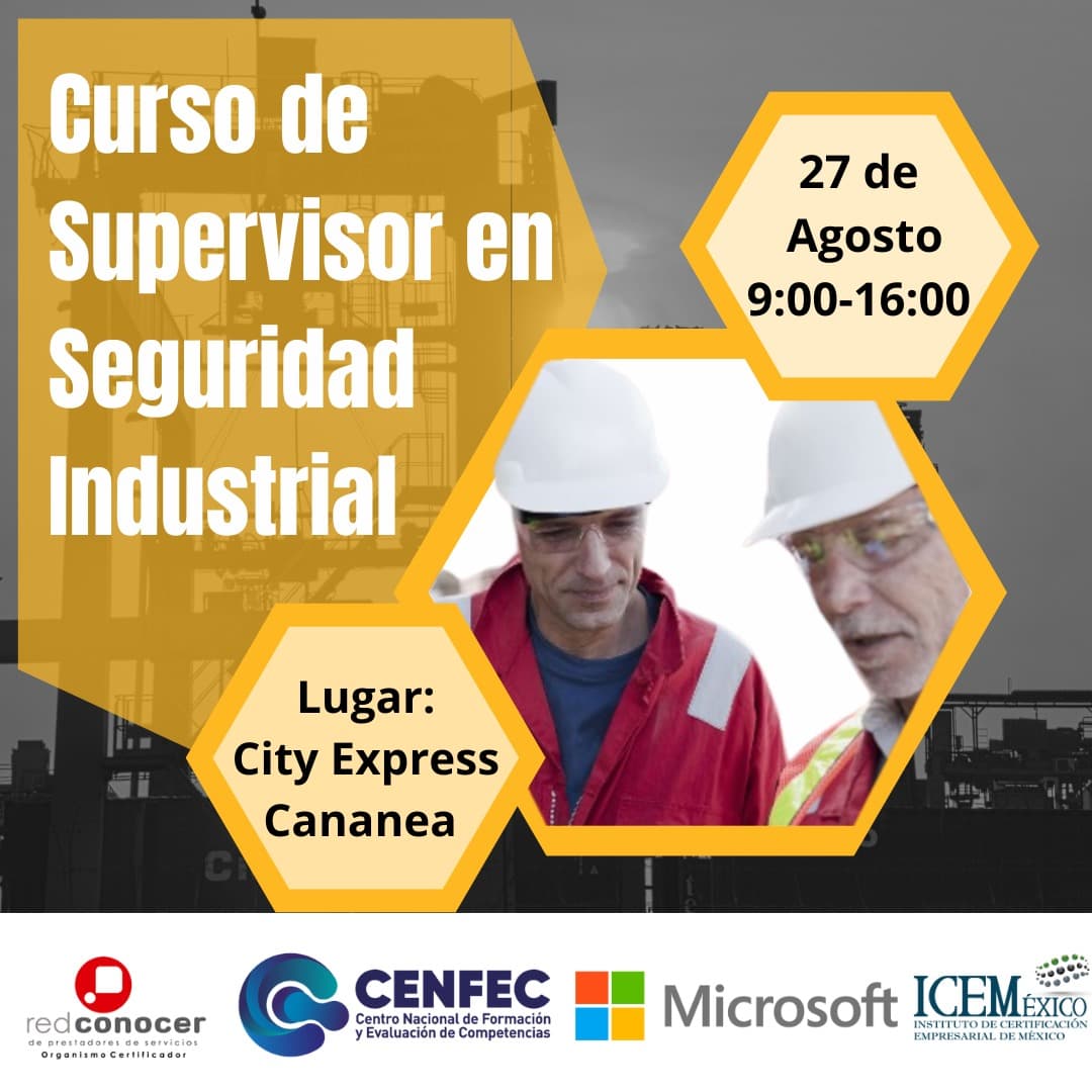 De ahí que se esté ofertando el curso de «𝐒𝐮𝐩𝐞𝐫𝐯𝐢𝐬𝐨𝐫 𝐞𝐧 𝐒𝐞𝐠𝐮𝐫𝐢𝐝𝐚𝐝 𝐈𝐧𝐝𝐮𝐬𝐭𝐫𝐢𝐚𝐥», donde se enseñarán las mejores prácticas nacionales e internacionales que pondrán al aprendiz en 𝐯𝐞𝐧𝐭𝐚𝐣𝐚 𝐥𝐚𝐛𝐨𝐫𝐚𝐥, el cual corre a cargo del Centro Nacional de Formación y Evaluación de Competencias, con aval de Red Conocer e ICEM México.