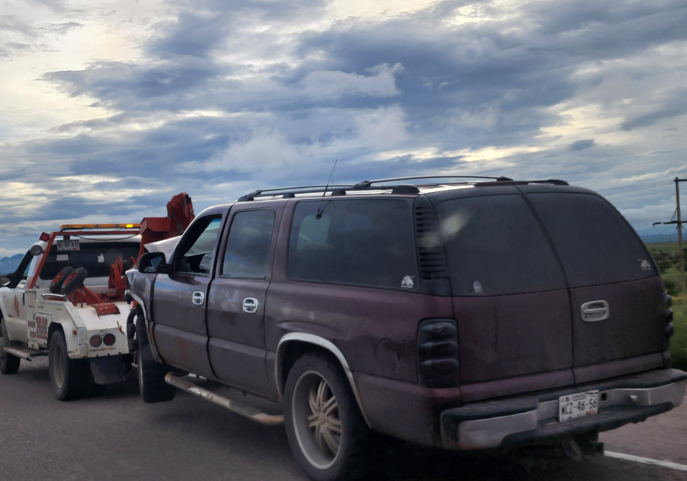 Cananea, Sonora a 19 de Agosto de 2022.- Fatales consecuencias dejó un accidente automovilístico la tarde de este viernes en el Km 1 + 400 de la carretera Entronque de Naco a Naco, donde participaron un vehículo tipo Suburban y un carro tipo camioneta de la marca Envoy, donde desafortunadamente perdieron la vida sus ocupantes, identificados posteriormente como Maricela Martínez Parra de 33 años de edad y Carlos Isidro García de 42 años, ambos residentes del municipio de Cananea. Mientras que el conductor de la Suburban resultó con lesiones menores.