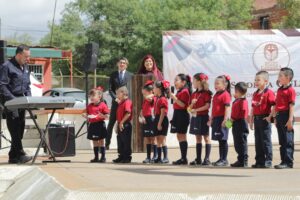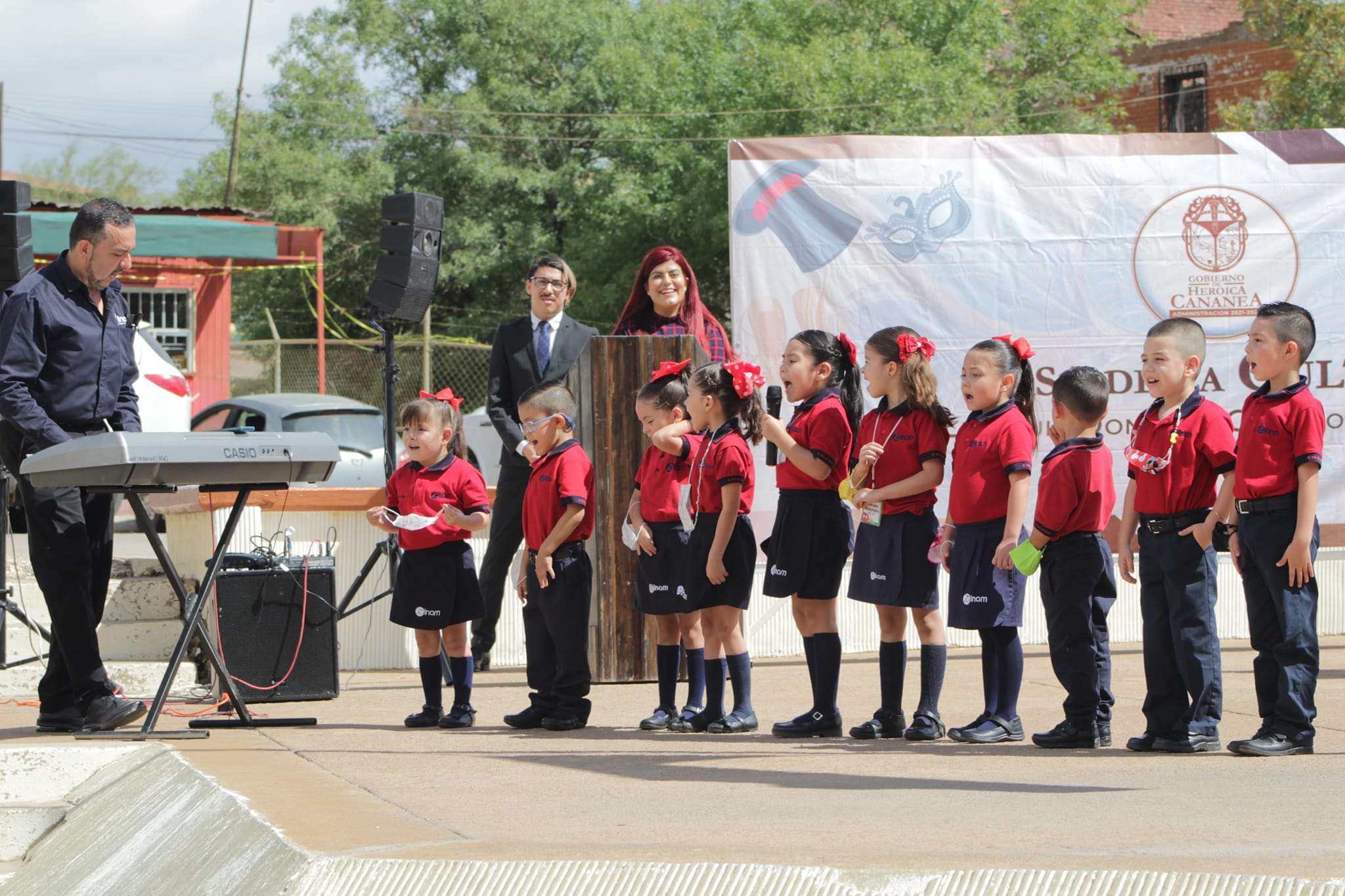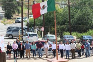 Encabezó la ceremonia el Secretario del Ayuntamiento Lic. Jesús Maytorena en representación del Alcalde Eduardo Quiroga, así mismo funcionarios de primer nivel del Ayuntamiento, cuerpo de Regidores, funcionarios del Gobierno Estatal y desde luego, escoltas de las diferentes escuelas de la localidad.
