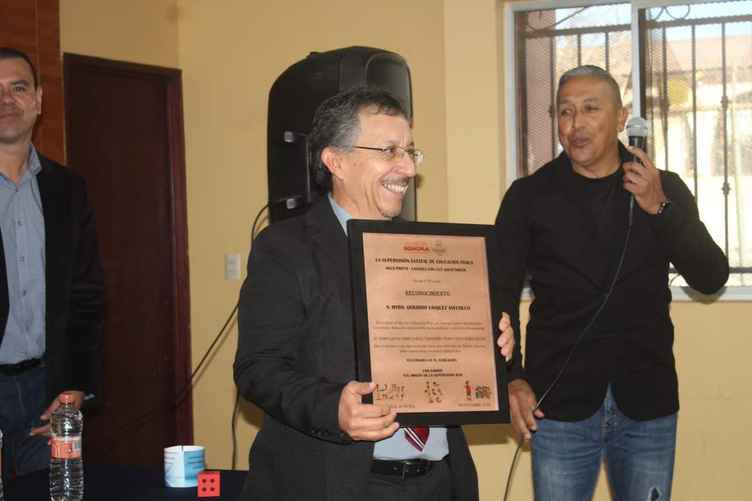 Cananea, Sonora.- En un emotivo evento se despidió el maestro de educación física Gerardo Vázquez Avechucho, quien después de 31 años con 6 meses ha decidido jubilarse.