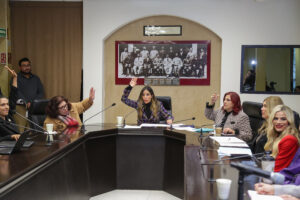 En el siguiente punto del orden del día, relativo al análisis, discusión y, en su caso, dictaminación del escrito del Presidente de la Comisión Estatal de Derechos Humanos, mediante el cual solicita que la Comisión de Justicia y Derechos Humanos cite a comparecer a la Fiscal General de Justicia del Estado, la diputada Diana Karina Barreras Samaniego informó que trabajan en esta solicitud, por lo que en una próxima sesión será dictaminada.