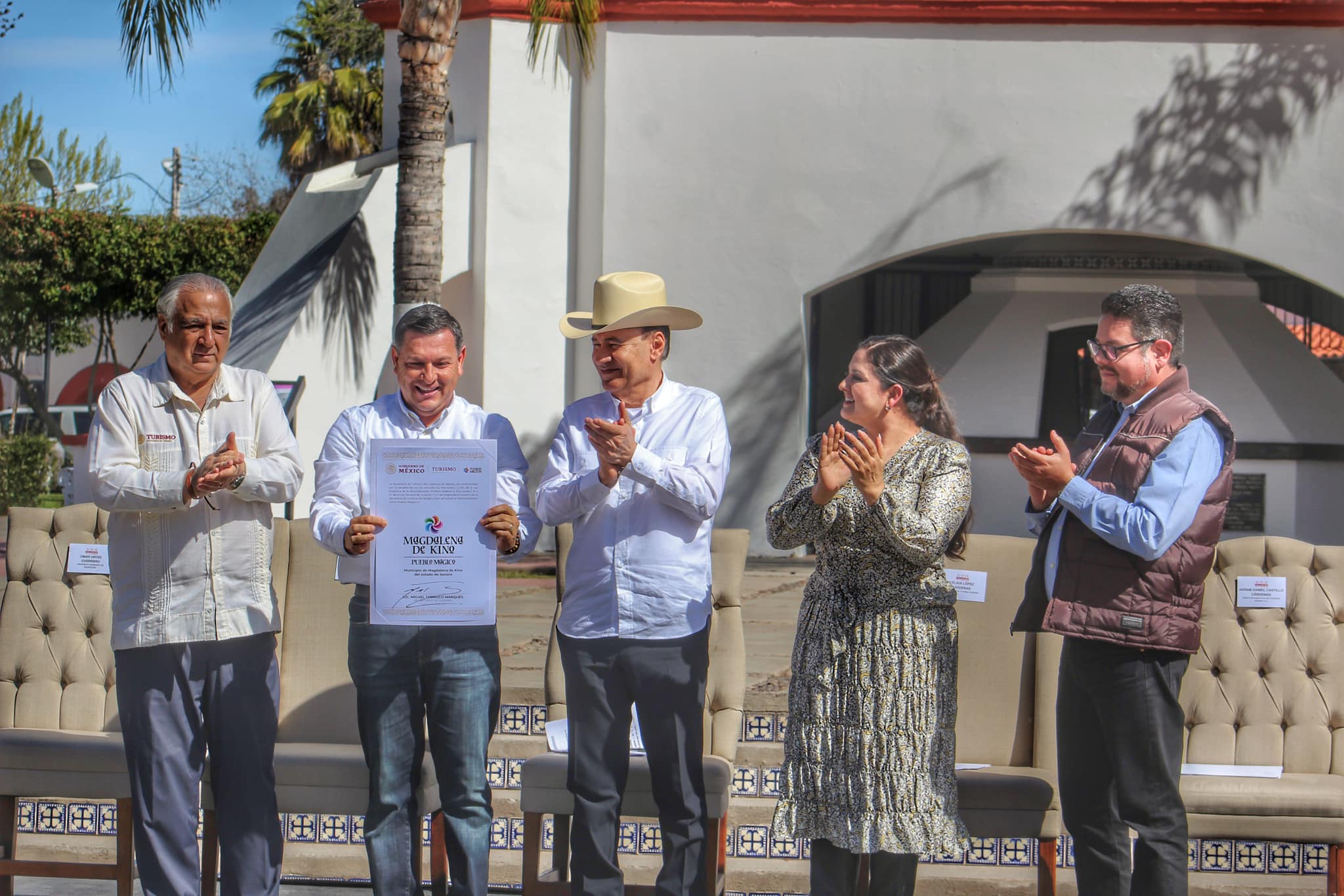 Magdalena de Kino, Sonora.- El gobernador del Estado, Alfonso Durazo Montaño en compañía del Presidente Municipal, Omar Ortez Guerrero y el Secretario de Turismo del Gobierno de México, Miguel Torruco Marqués, hizo entrega de la actualización del título de Pueblo Mágico a Magdalena, Sonora, un municipio lleno de historia, magia y mucha tradición.