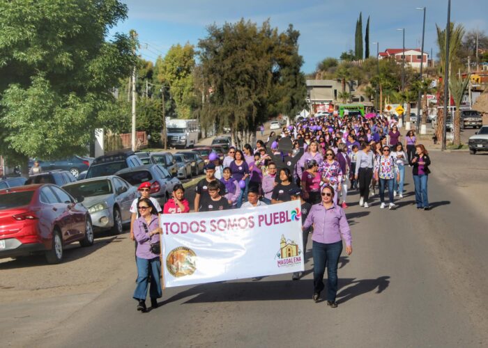 Magdalena de Kino, Sonora.- Dentro del marco del Día Internacional de la mujer, el Sistema para el Desarrollo Integral de la Familia en Magdalena, encabezado por su Presidenta, Estefanía Rojas de Ortez, en compañía de valientes mujeres que alzan su voz por más y mejores oportunidades para su género, realizaron una caminata en pro de recordar la lucha por la igualdad de derechos que hace siglos otras mujeres encabezaron, logrando establecer en diversos lugares las leyes que hoy muchas de ellas hacen valer hasta el día de hoy.