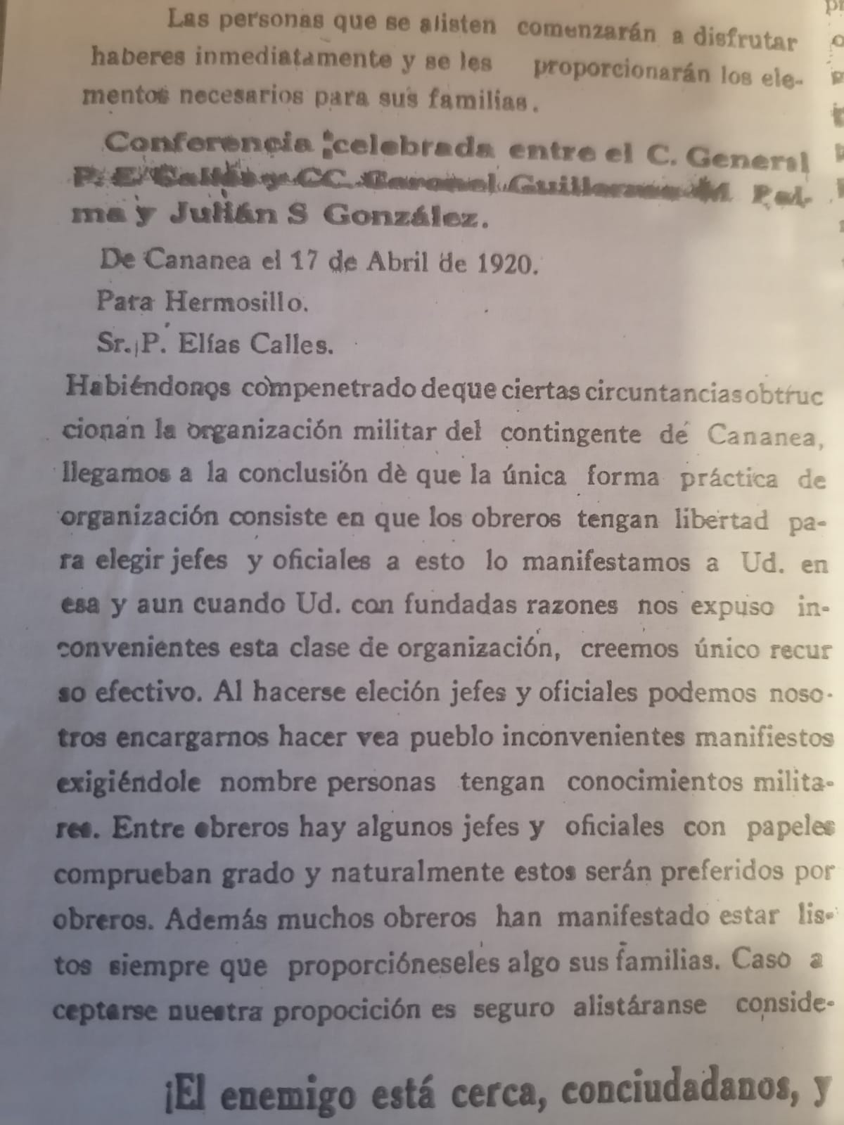 Llamamiento al Pueblo de Cananea: El enemigo esta ya a punto de invadir el Estado. Si dejamos que penetre a él, a su paso sembrara la desolación y la miseria. […]