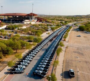 Hermosillo, Sonora, 26 de junio de 2023.- El gobernador Alfonso Durazo Montaño encabezó la entrega de 131 patrullas destinadas a fortalecer la labor de la Policía Estatal de Seguridad Pública (PESP) y 32 municipios, con una inversión de 160 millones 530 mil 544 pesos.