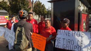 Mineros de las secciones 17, 65 y 201 de Taxco, Guerrero, Cananea, Sonora y Sombrerete, Zacatecas, se manifiestan el día de hoy por fuera de Palacio Nacional en exigencia solución a lo que señalan son 3 huelgas mineras que iniciaron simultáneamente y que dicen sigue manteniendo sin resolver el empresario German Feliciano Larrea Mota Velazco presidente de grupo México.