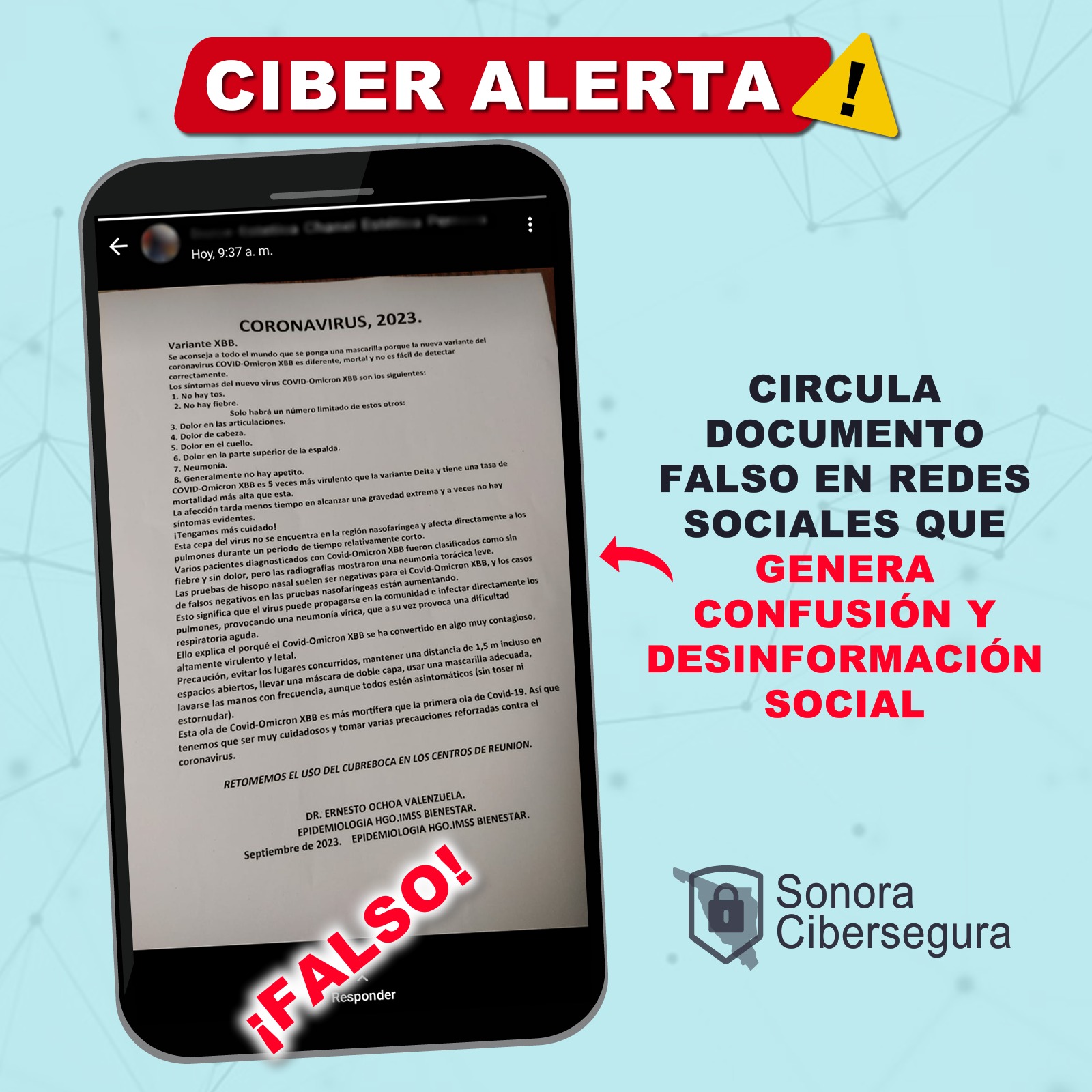 ¡MUCHO CUIDADO! Personas malintencionadas buscan desinformar y crear confusión en la sociedad con mensajes y documentos falsos que circulan en redes sociales acerca de la variante XBB del COVID-19. ¡VERIFICA ANTES DE COMPARTIR!