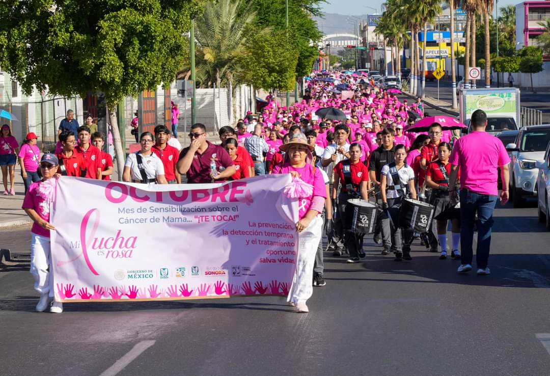 Por su parte María de Lourdes Diaz Espinosa, directora del Instituto Mexicano del Seguro Social en Sonora, reconoció que este tipo de acciones es relevante en el tema de salud, que tiene como finalidad trabajar en coordinación, reeducar a la población y hacer todo para que las mujeres se toquen para evitar que les toque, y si les llega a tocar, tratar esta enfermedad de manera oportuna.