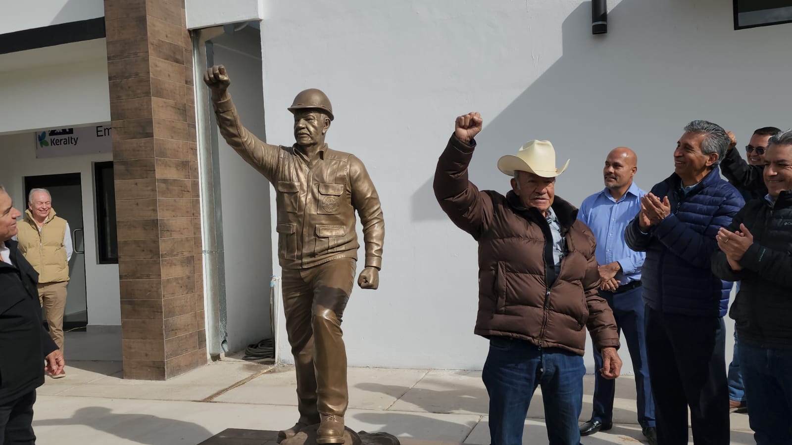 La parte emotiva del día fue a la hora de develar el Monumento al Minero Incansable en honor al C. Jesús Vega “El Azul”, de 80 años de edad, que aún sigue laborando en la Mina y quien durante décadas se ha distinguido por su caballerosidad, vocación de servicio y alta responsabilidad en el cumplimiento del trabajo, encarnando la figura del Minero Incansable.