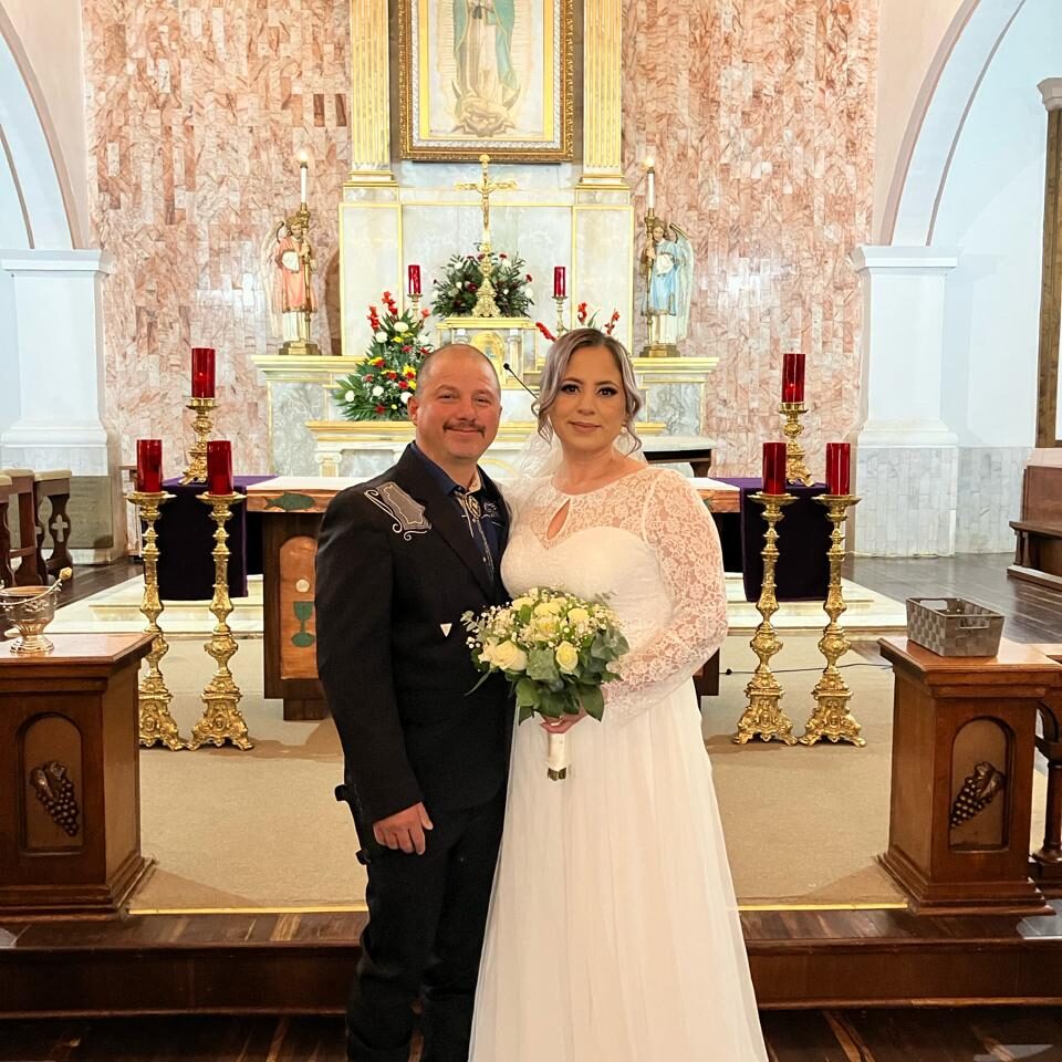 Fue en punto de las 12:00 hrs. que llegaron ante el altar de la Parroquia de Nuestra Señora de Guadalupe, la pareja formada por Francisco Javier Moreno Santa Cruz y María Guadalupe Sesma Molina, para unirse en matrimonio eclesiástico, después de 13 años en feliz unión, siendo acompañados por sus hijos Orlando y Evelyn, Francisco Javier y Jesús Pedro, así como por sus padres Francisco Javier Moreno, Martha Santacruz y María Luisa Molina.
