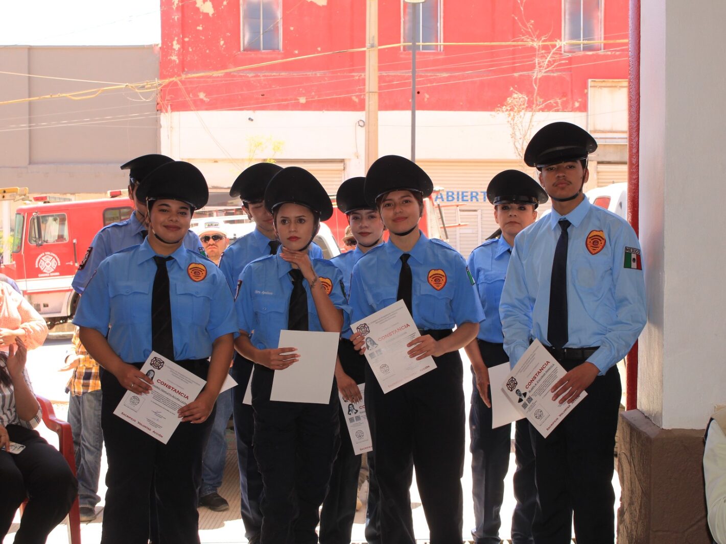Se realizó entrega de constancias a los jóvenes que concluyeron su formación en la Academia de Bomberos, entrega de distintivos del 70 aniversario a los y las elementos bomberos, además de reconocimientos por 30, 25 y 20 años de servicio a Iván Alejandro Molina, César Iván Carreón, Ramón Villa Aguirre, Ernesto Ayón y Antonio Martínez, respectivamente.