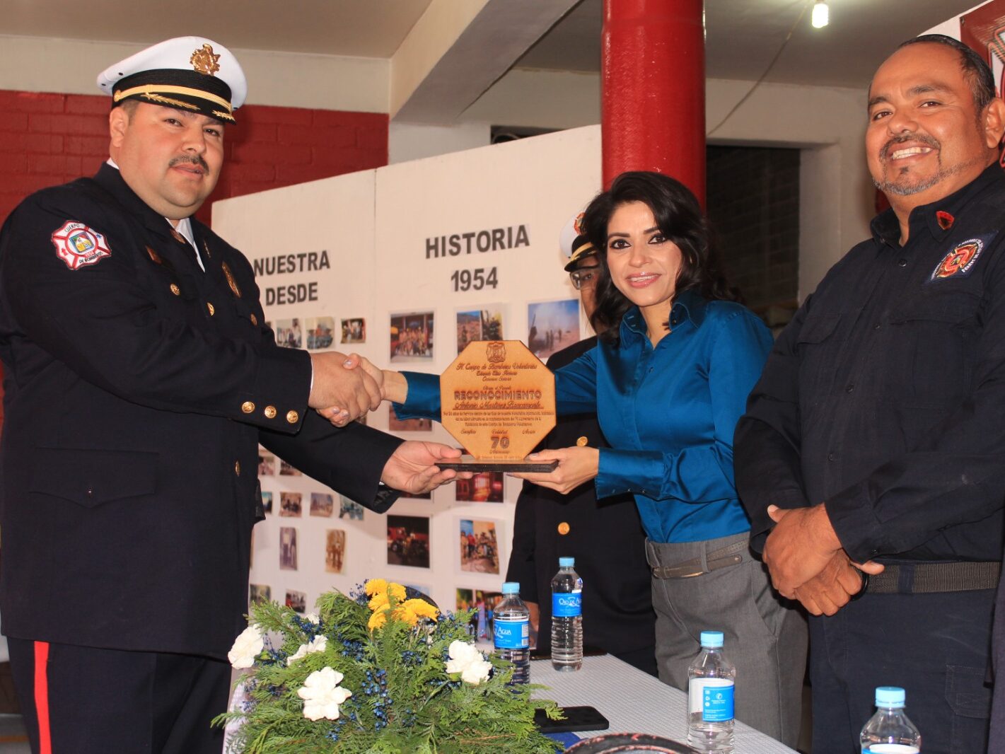 En este significativo evento se contó con la excelente participación de la banda de guerra y escolta de la secundaria Mártires de 1906, la comunidad se unió para celebrar y honrar a las filas de los valientes voluntarios, donde estuvieron presentes destacados bomberos veteranos, como Jesús Ortega y José Luis Contreras, por último, con el resonar de las sirenas de emergencia, la corporación realizó la develación de placa por el 70 aniversario e hizo un último llamado en la radio comunicación ante la emotiva jubilación de Nazario Ortega, en honor de quien lleva el nombre la sub estación de Hangares.