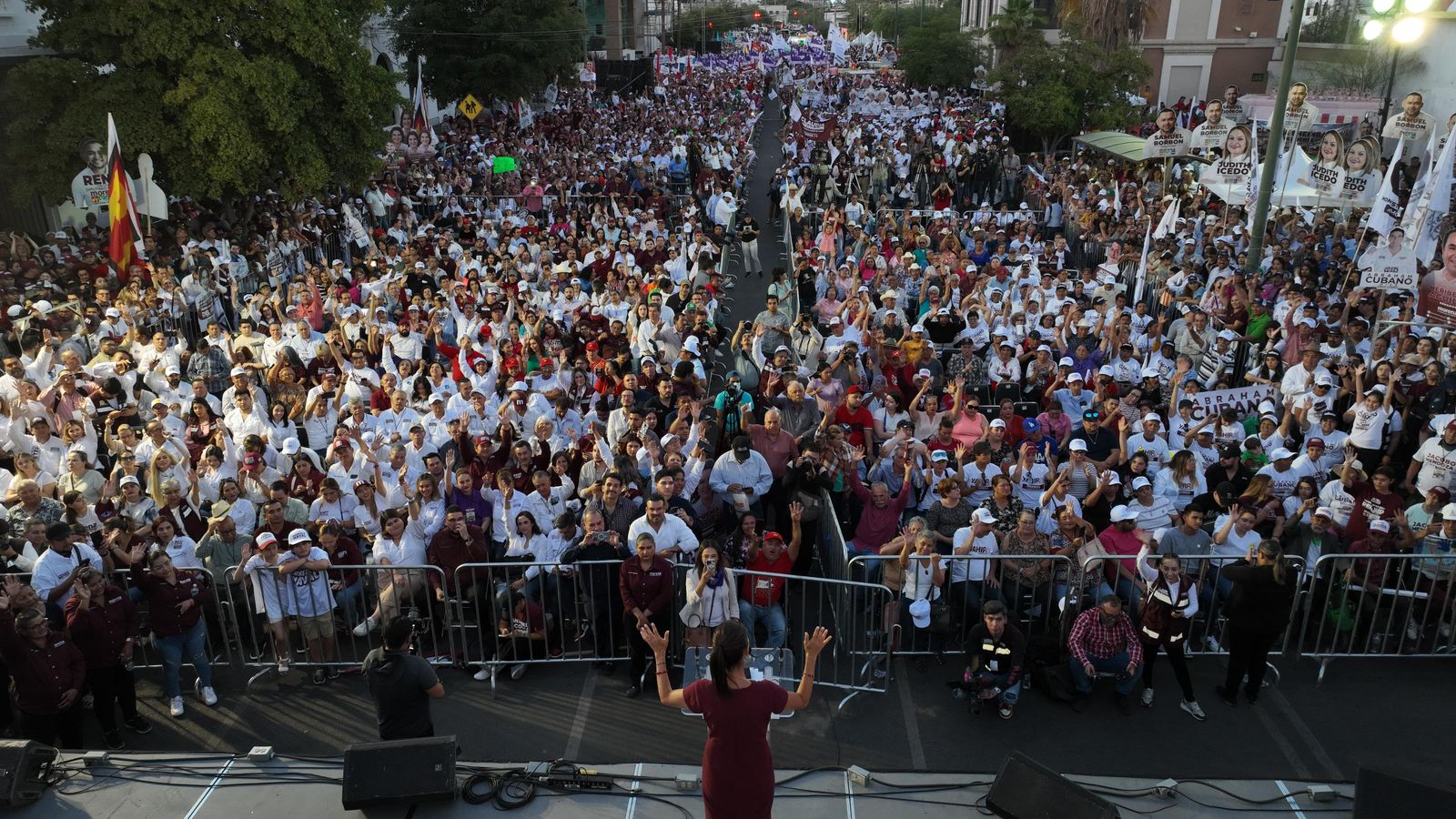 En Hermosillo, Sonora, Claudia Sheinbaum estuvo acompañada de los candidatos al Senado de la República; Lorenia Valles y Heriberto Aguilar, por Morena; Celida López y Froylan Gámez, por el PT.