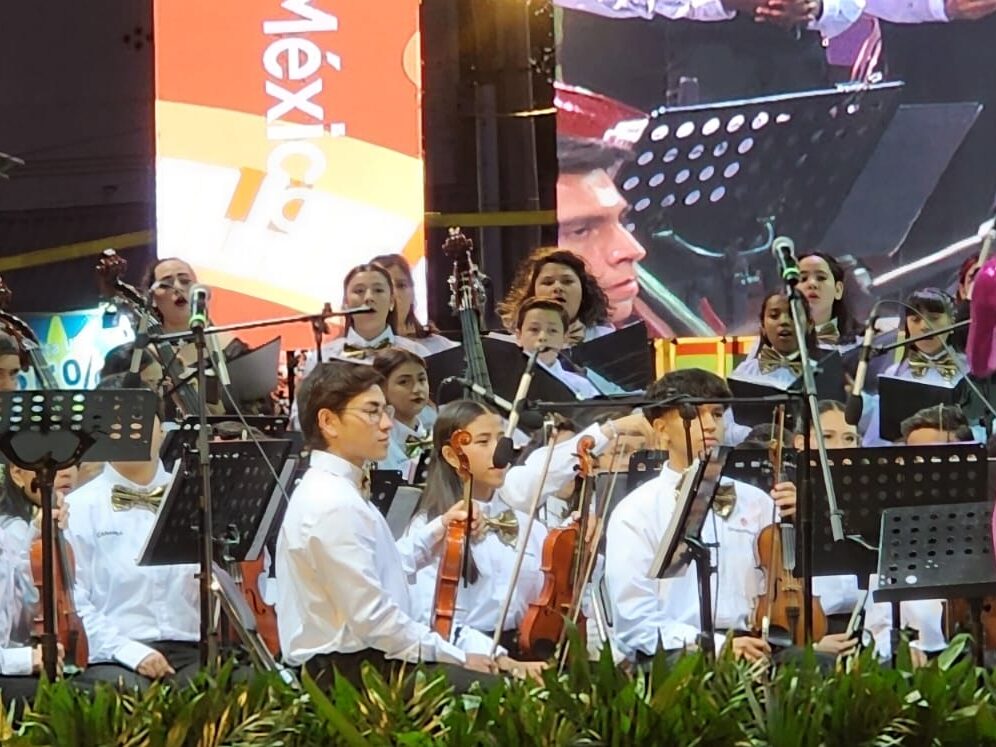 Con melodías emblemáticas como “Querida”, ”Amor eterno», «Buenos días, Señor Sol», «Hasta que te conocí» y «Te sigo amando», la gente de Cananea se mostró entusiasmada con la presentación de los 111 niñas, niños y jóvenes que forman parte de la Orquesta Buenavista del Cobre, quienes durante algunas piezas estuvieron acompañados por el mariachi “Los Reyes”, de Hermosillo.