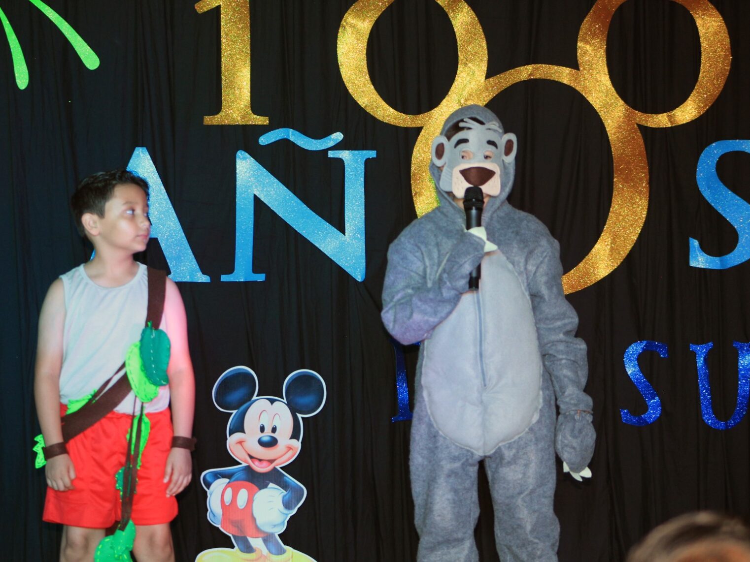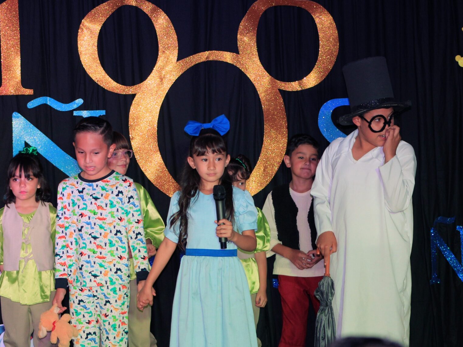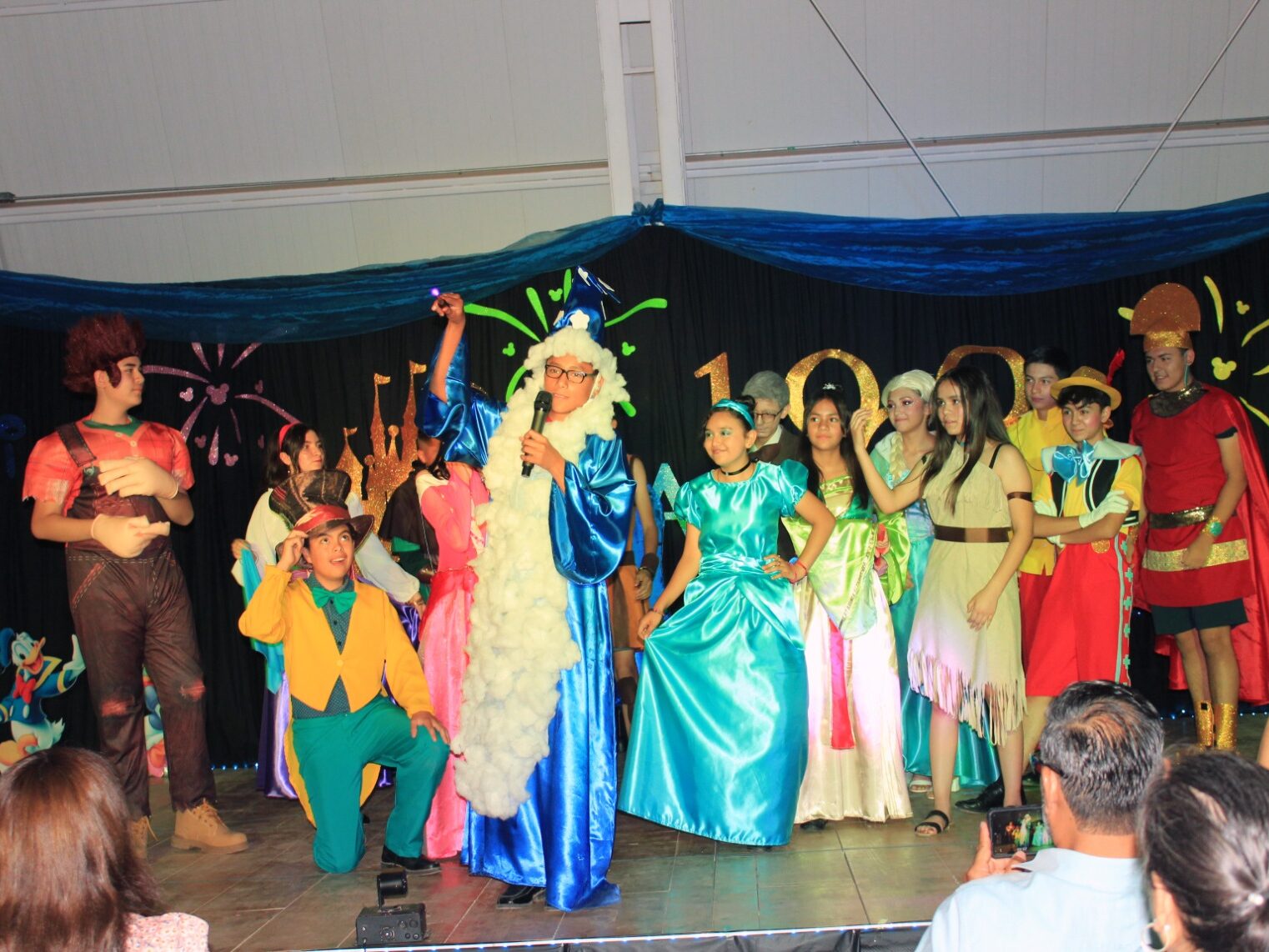 Bajo un mágico escenario en la renovada Casa de Cultura, los cuadros musicales fueron introducidos por alumnos de secundaria, donde los niños y niñas de primer a tercer grado de primaria deleitaron con sus interpretaciones de los clásicos de Disney que cautivaron en la época dorada desde 1930 y en la era de plata, con Blancanieves y los Siete Enanos, Peter Pan y El Libro de la Selva.