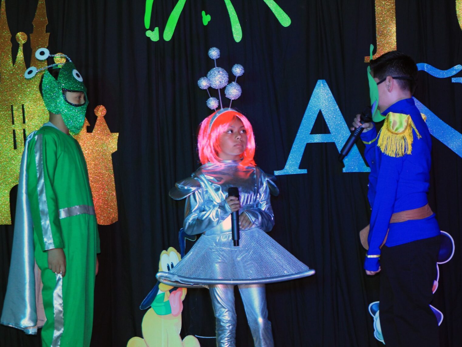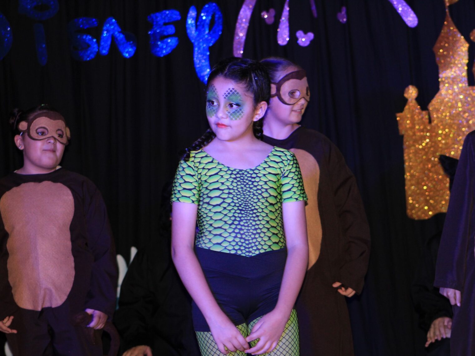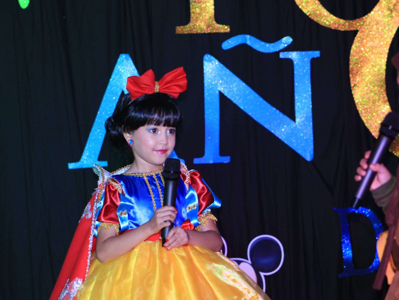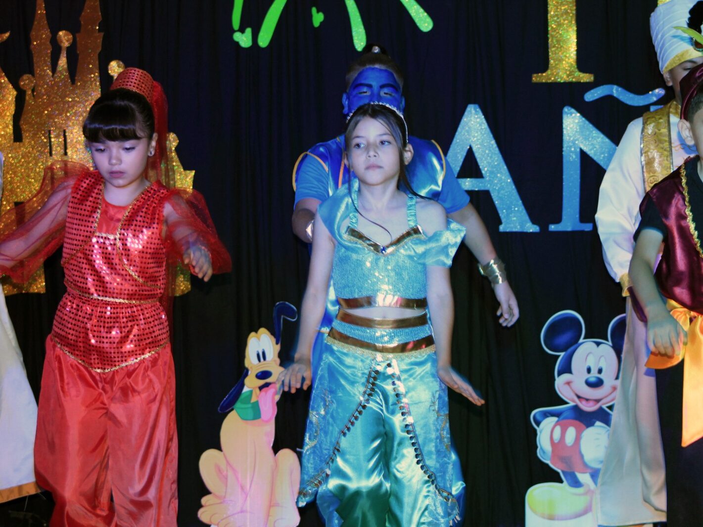 Bajo un mágico escenario en la renovada Casa de Cultura, los cuadros musicales fueron introducidos por alumnos de secundaria, donde los niños y niñas de primer a tercer grado de primaria deleitaron con sus interpretaciones de los clásicos de Disney que cautivaron en la época dorada desde 1930 y en la era de plata, con Blancanieves y los Siete Enanos, Peter Pan y El Libro de la Selva.