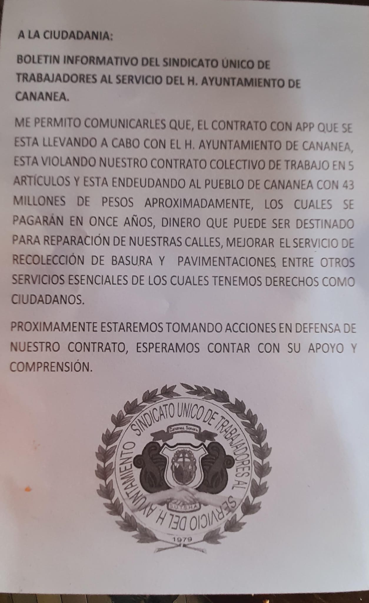 Cananea, Sonora, a 05 de junio de 2024.- El Sindicato Único de Trabajadores al Servicio del Honorable Ayuntamiento (S.U.T.S.H.A.) dice NO a la privatización del alumbrado que el Gobierno Municipal de Cananea pretende hacer valer a través de una alianza público – privada que conllevaría una deuda para el municipio además de afectaciones y violaciones laborales para la base de sindicalizados.