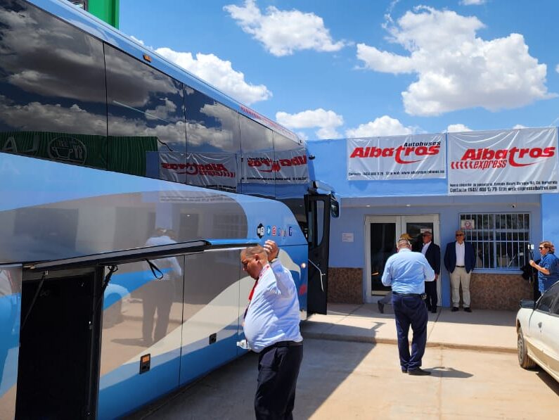 Cananea, Sonora, a 14 de julio de 2024.- Este viernes inició operaciones la línea de Albatros Autobuses en la región, arrancó de manera oficial la primera ruta del autobús A131 proveniente de la ciudad de Agua Prieta a Cananea, alrededor de la 1:30 de la tarde llegaron los primeros pasajeros a la sucursal ubicada en la salida a la carretera a Ímuris, a unos pasos del Mausoleo a Los Mártires de 1906, a un costado de conocida gasolinera
