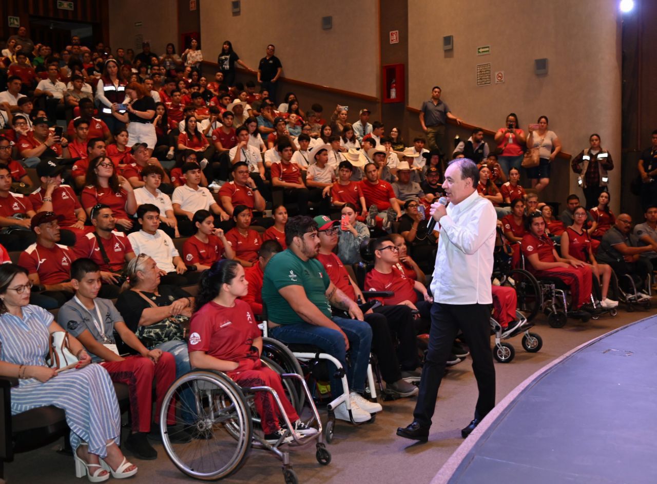 El mandatario sonorense detalló que, del total de las becas entregadas, 131 corresponden a medallistas nacionales de oro; 97 en plata; 85 a bronce; 69 para atletas con logros deportivos y con perspectiva en eventos federados; 27 para prospectos nacionales Conade y 43 para deportistas paranacionales.