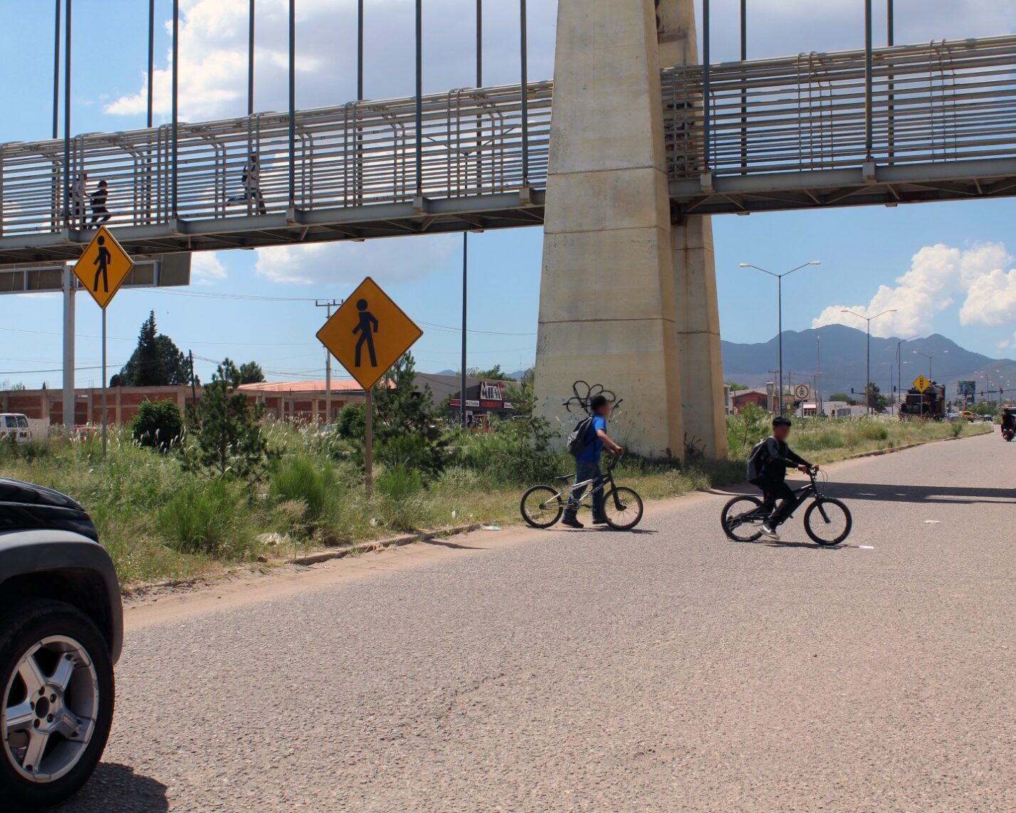 Cananea, Sonora, a 01 de septiembre de 2024.- El uso del puente peatonal en la salida a la carretera Cananea a Agua Prieta se ha convertido en algo indispensable para garantizar la seguridad de los estudiantes de las escuelas ubicadas en ese sector y de otros usuarios, sin embargo, un alto porcentaje de los jóvenes prefiere arriesgarse a cruzar los carriles por debajo del puente.