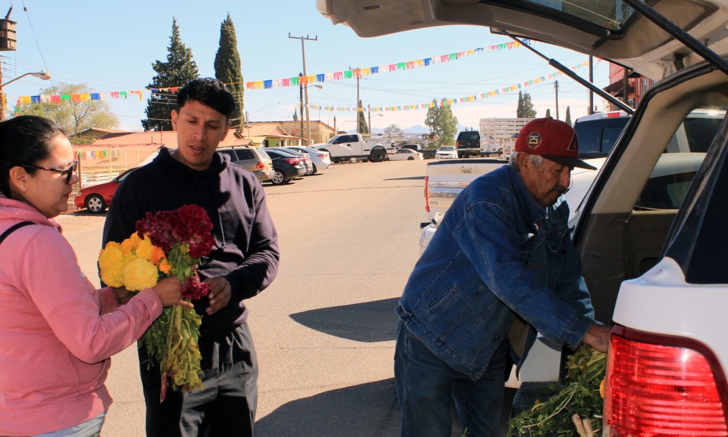 A pesar de la edad, Guillermo siempre acude a Cananea en esta temporada donde pasa entre 3 o 4 días, con apoyo de un familiar para atender el puesto y regresar a Ímuris para asearse y comer, con una buena actitud y excelente atención al cliente, ofrece el mazo de flores en 50 pesos.
