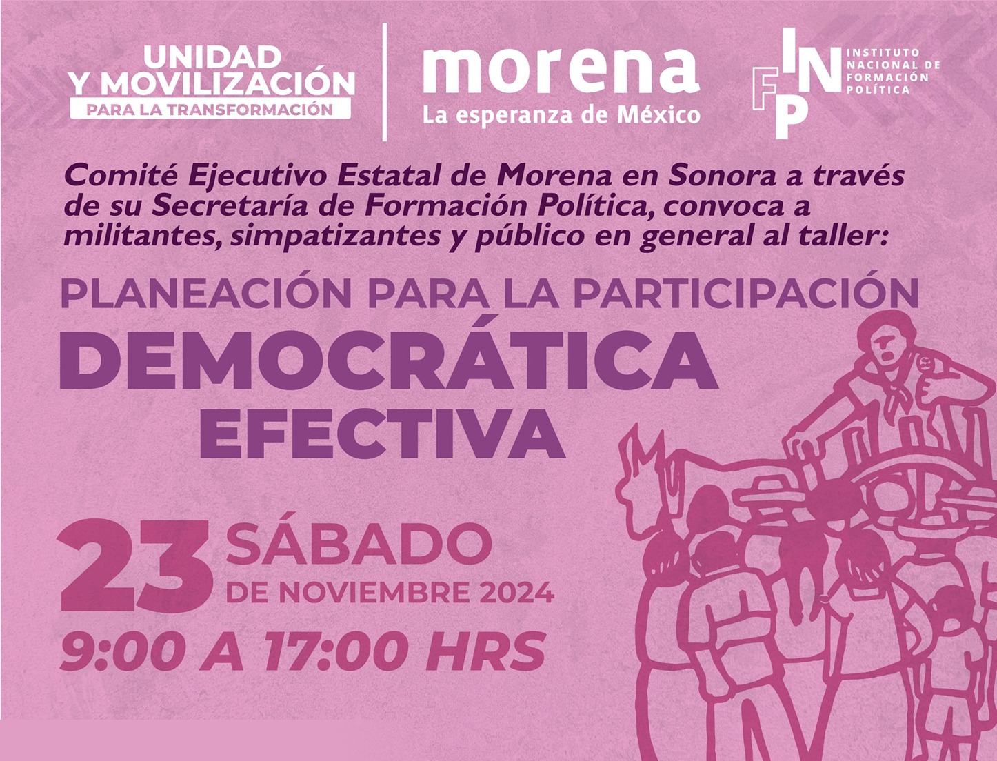 La comisionada, Diana García Sainz, además realizó la invitación al Taller: “Planeación para la Participación Democrática Efectiva”, un espacio de participación y convivencia al que se convoca a militantes, simpatizantes y público en general, donde también se ofrecerá estancia infantil.