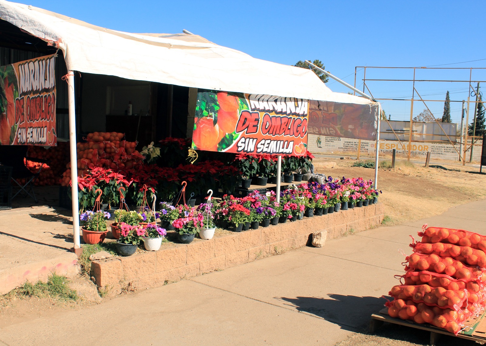 Como en cada temporada de fin de año, en Cananea ya se observan comerciantes que traen desde Morelos las bellas flores para comercializar como el puesto ambulante ubicado en la avenida Campos Mineros, donde cuentan con Flor de Nochebuena en maceta a 200 pesos, o bien petunias en 50 y 120 pesos, o el saco de naranjas en 130 pesos, estarán hasta el 24 de diciembre y atienden de lunes a domingo en horario de 7:00 de la mañana a 5:00 de la tarde.