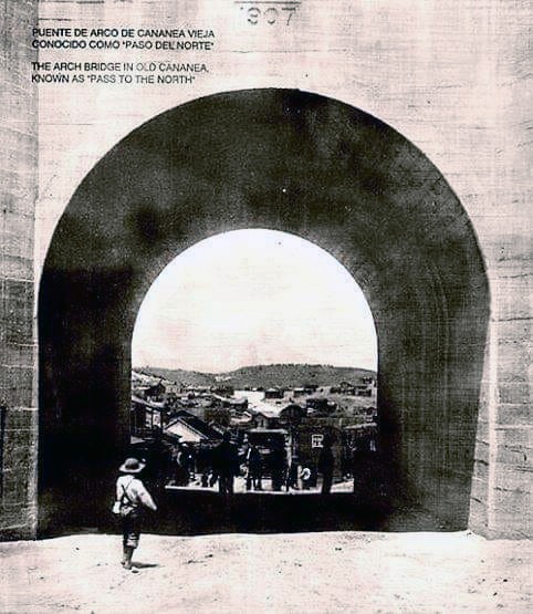 Antes de que se reconstruyera de material de concreto, el Puente de Arco era de madera, en él estuvieron los famosos “Rangers” que hicieron acto de presencia en el año de 1906, cuando se originó la huelga de los obreros y aún y con todo que el gobierno estatal y federal negaron su presencia, las fotografías de esas fechas lo desmienten, y también los habitantes en la ciudad por más de un siglo, como fue el caso de la Sra. Lupita León, quien narró en entrevista que ella tenía conocimiento que cuando el puente era de madera y después de haber estado sentados los Rangers sobre él, dos mujeres le prendieron fuego al no estar de acuerdo con el trato que se daba a los mineros de Cananea, aquel primero de junio de 1906.