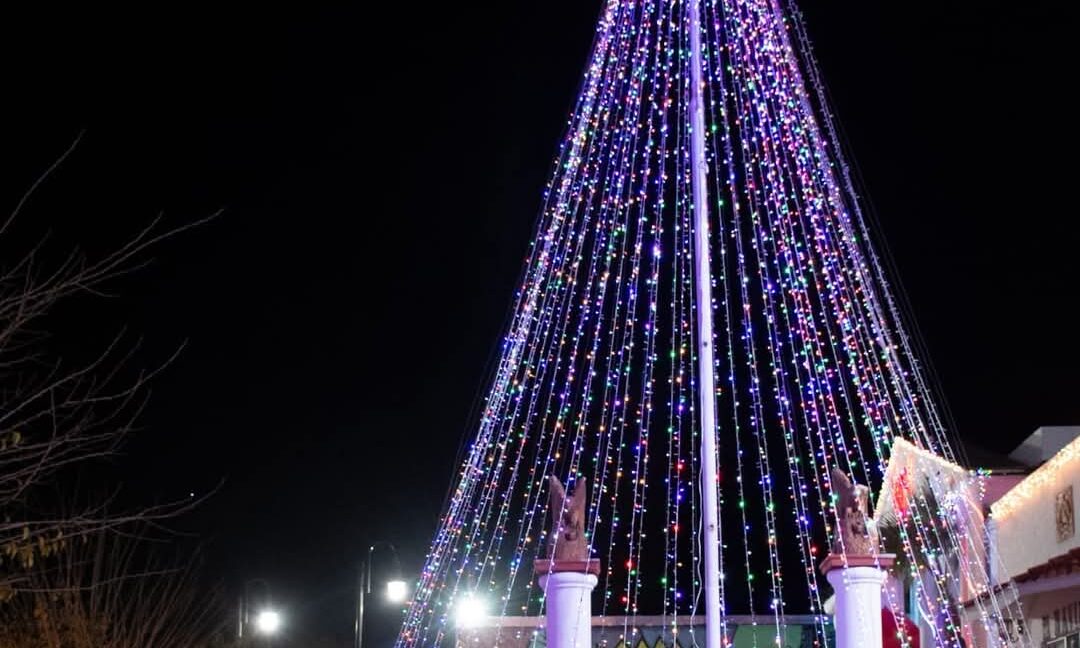 Cananea, Sonora, a 02 de diciembre de 2024.- La tarde de este domingo la calle principal de Naco, Sonora, se iluminó con el tradicional encendido de luces navideñas con motivo de las fiestas decembrinas, en un evento que presidió el alcalde, Lorenzo “El Choby” Villegas, en la Plaza Municipal.