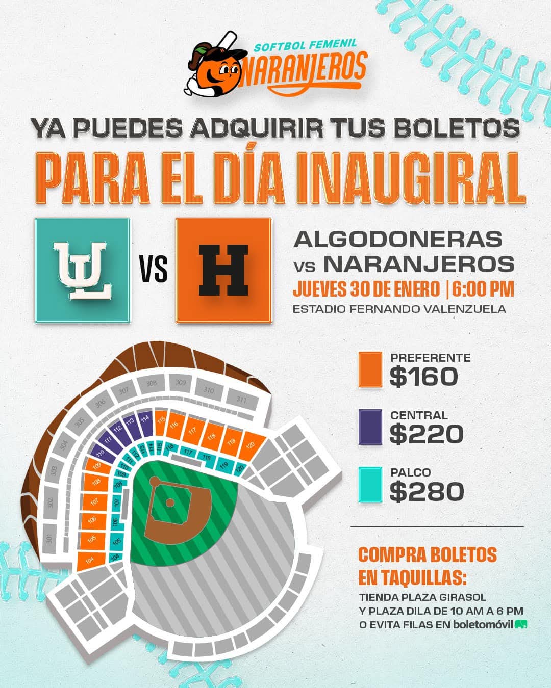 El equipo de Sonora, Naranjeros Sóftbol Femenil de Hermosillo tendra el juego inaugural de esta temporada en el Estadio Fernando Valenzuela este próximo 30 de enero, enfrentandose al equipo de Algodoneras de Unión Laguna.