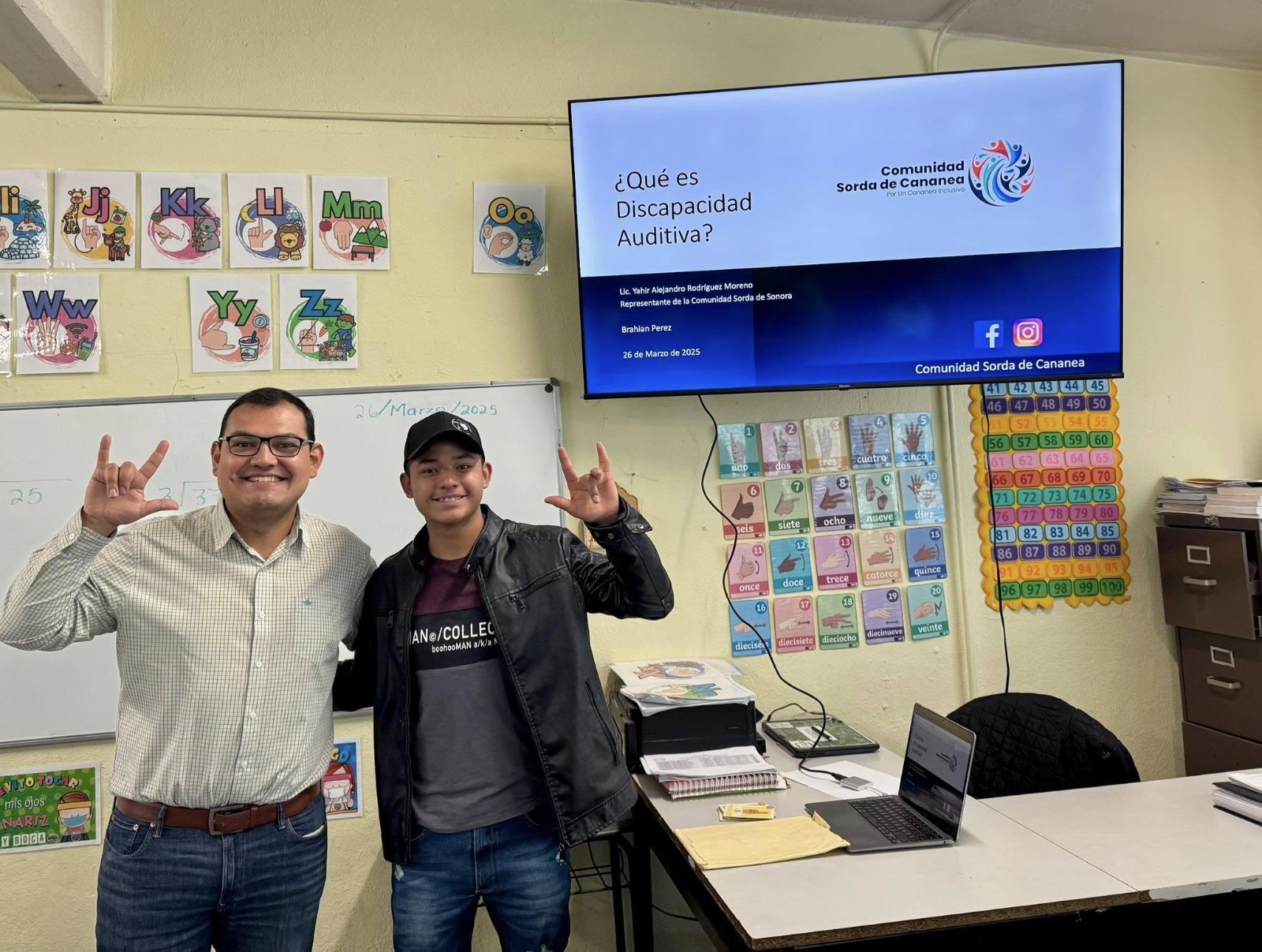 Cananea, Sonora, a 27 de marzo de 2025.- Además del gran trabajo por la inclusión en las escuelas de la localidad que ha impulsado la Comunidad Sorda de Cananea mediante diferentes dinámicas, esta semana sus integrantes acudieron a un plantel educativo de la ciudad de Agua Prieta, donde también hicieron ver la necesidad de conocer la Lengua de Señas Mexicana (LSM).